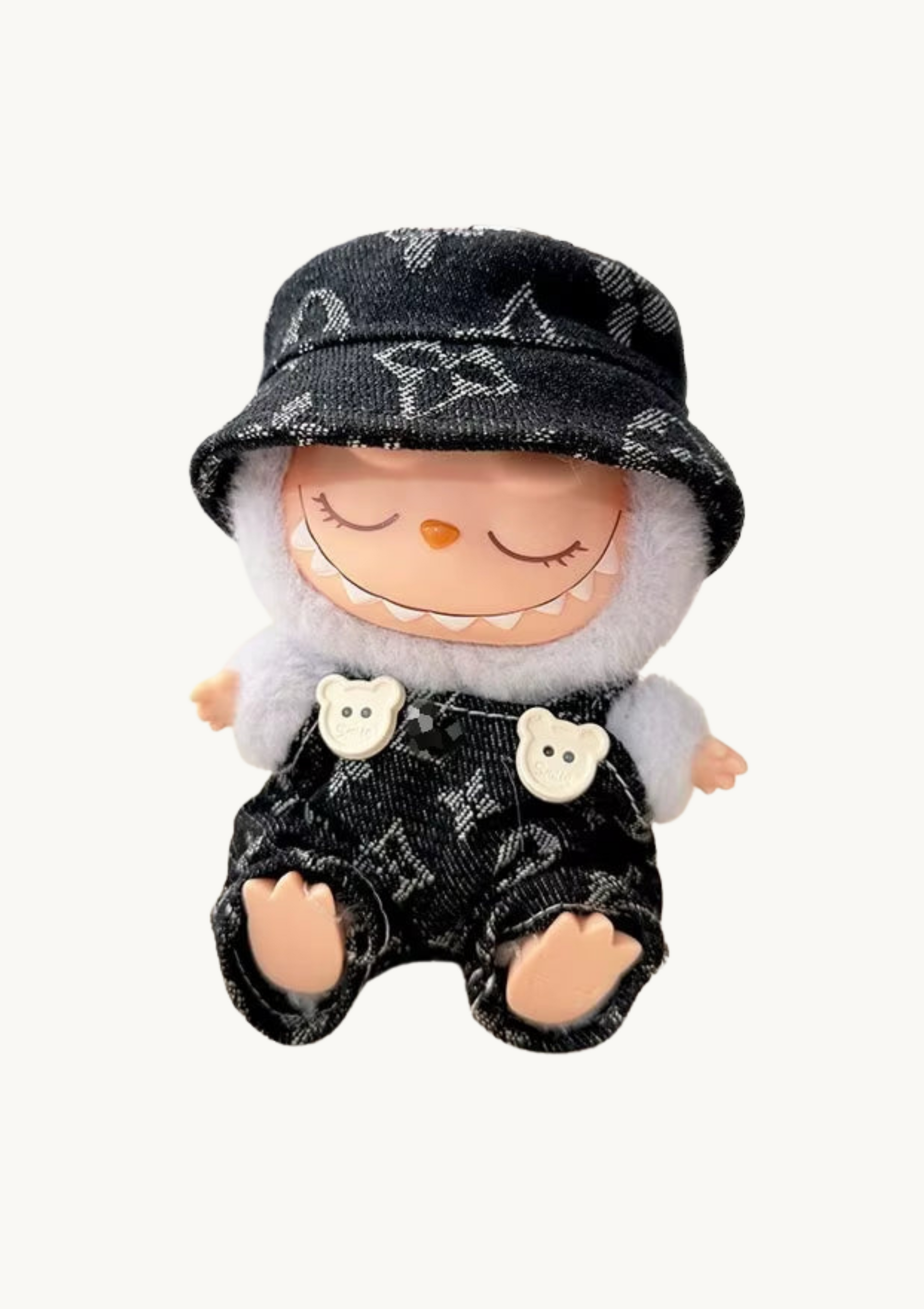 Denim-inspired and full of personality, this romper with matching hat is perfect for Labubus who love standing out with bold fashion choices.